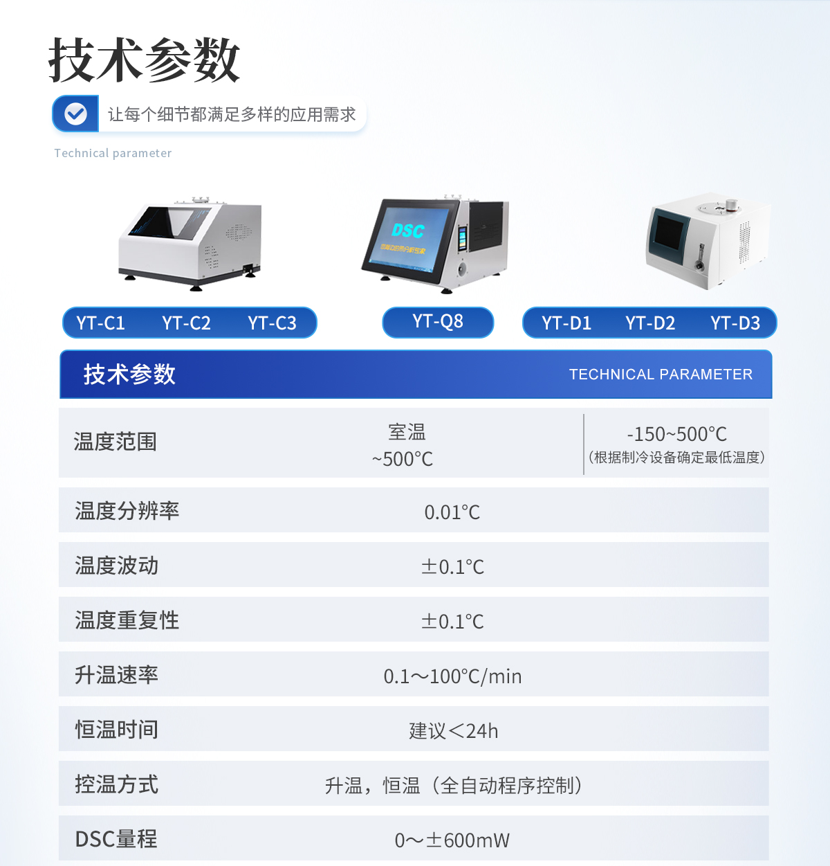 1.溫度范圍: 室溫~500℃ 2.溫度分辨率: 0.01℃ 3.溫度波動(dòng): ±0.1℃ 4.溫度重復(fù)性: ±0.1℃ 5.升溫速率: 0.1~100℃/min 6.恒溫時(shí)間:建議<24h 7.控溫方式:升溫,恒溫(全自動(dòng)程序控制) 8.DSC量程: 0~±600mW 9.DSC解析度: 0.01mW 10.DSC靈敏度: 0.01mW 11.工作電源: AC220V/50Hz或定制 12. 氣氛控制氣體:氮?dú)狻⒀鯕猓▋x器自動(dòng)切換) 13.氣體流量:0-300mL/min 14.氣體壓力:0.2MPa 15.顯示方式: 8寸 LCD觸摸屏顯示,超硬度儀器面膜設(shè)計(jì)。