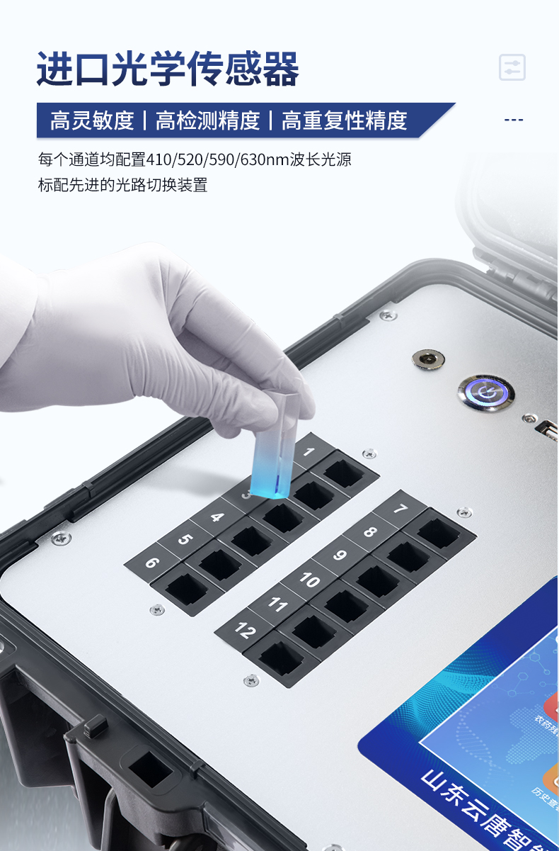 | 該儀器通過光電子技術對反應生成物的反射率進行分析測試,定量或定性分析樣品中待測物的含量。 | 安卓智能操作系統,7英寸高靈敏真彩觸摸屏,更加**和人性化操作, | 儀器具有4G無線聯網、wifi聯網上傳、GPRS無線遠傳功能,快速上傳數據。 | 便攜式儀器,便于現場攜帶操作,主機重量不大于3kg。 | 具有可見光光源,可檢測可見光信號,檢測值0~30000。 | 具有常用打印機數據線接口,直接打印結果;配備USB接口,可連接網絡。 | 具有多個食品安全檢測項目,開放平臺,可以增減檢測項目。 | 檢測通道:12個檢測通道,可以同時測試多個樣品,每個樣品由程序控制分別獨立工作,不會互相干擾。 | 以模擬反射率的標準片為50%附近時為代表,精密度CV值≤0.8%。 | 供電電源:(220±22V)~50Hz±1Hz,供電電源電壓波動不應超過220V AC±10%。 | 內置打印機,實時打印檢測結果。內置大容量電池,便于現場執法檢測。 | 高靈敏度,高檢測精度,高重復性精度,掃描式高精度光學傳感器。 | 機身儲存上萬條檢測結果,也可以導出儲存。 | 開放端口,可連接監管平臺數據庫,界面有上傳操作。 |
