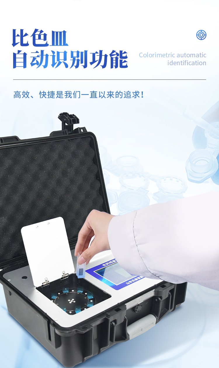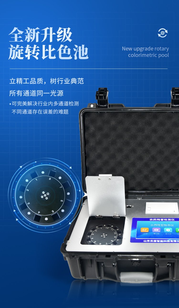 | 機器采用全新安卓智能系統(tǒng),主控芯片采用 ARM Cortex-A7,RK3288/4核處理器,主頻1.88Ghz,運轉(zhuǎn)速度更快速,穩(wěn)定性更強。 | 創(chuàng)新檢測模式: *儀器采用精密旋轉(zhuǎn)比色池設(shè)計,使用光源一致,可以解決各通道間由于光源誤差帶來的檢測結(jié)果誤差問題,檢測結(jié)果更加精準。 *儀器具有自動識別比色皿檢測功能,即:將樣品比色皿放入儀器后,點擊樣品檢測,儀器自動識別比色皿進行通道檢測。 | 供電方式:交直流兩用,直流 12V 供電,可連接車載電源,可配 6ah 大容量充電鋰電池,方便戶外流動測試。 | 顯示方式:7英寸液晶觸摸屏顯示,人性化中文操作界面,讀數(shù)直觀、簡單。 | 檢測通道:8個檢測通道,可以同時測試多個樣品,循環(huán)檢測,即放即檢,每個樣品由程序控制分別獨立工作,不會互相干擾。 | 高精光源系統(tǒng): ①①儀器光源采用進口超高亮發(fā)光二極管,光源亮度可以自動調(diào)節(jié)與校準 ②智能恒流穩(wěn)壓,光強自動校準,長時間連續(xù)工作光源無溫漂現(xiàn)象。 | 智能操作分析系統(tǒng): ①儀器具有100多種蔬菜名稱菜單庫,分類管理,并可按需添加或刪除、編輯蔬菜名稱;可在同一檢測界面自動對應(yīng)相關(guān)檢測通道一次性選擇1-24個樣品名稱,無需退出界面,節(jié)省操作時間。 ②內(nèi)置新國家限量標準,與所測結(jié)果進行現(xiàn)場比對,并持續(xù)更新標準。 | 完善的配套硬件: ①采用串口5v打印機,可選擇手動打印或者自動打印,三分鐘出打印結(jié)果,打印格式為檢測人姓名、吸光度差值、檢測時間、檢測機構(gòu)、樣品名稱及結(jié)果判定。 ②儀器具有無線上傳模塊,檢測結(jié)果可批量打印,批量上傳。 | 數(shù)據(jù)調(diào)用: ①儀器可存儲20萬條檢測結(jié)果, ②檢測結(jié)果為Excel表格,方便后期進行數(shù)據(jù)分析與匯總報告 ③儀器采用USB2.0接口設(shè)計,支持 U 盤存儲,方便數(shù)據(jù)的存貯和移動,并可隨時與計算機直接相連,實現(xiàn)數(shù)據(jù)查詢、瀏覽、分析、統(tǒng)計、打印等。 | 后期產(chǎn)品固件可升級。 | 安全證書,放心保障:儀器具有中國計量科學(xué)研究院校準證書,權(quán)威認證,使用放心。 |