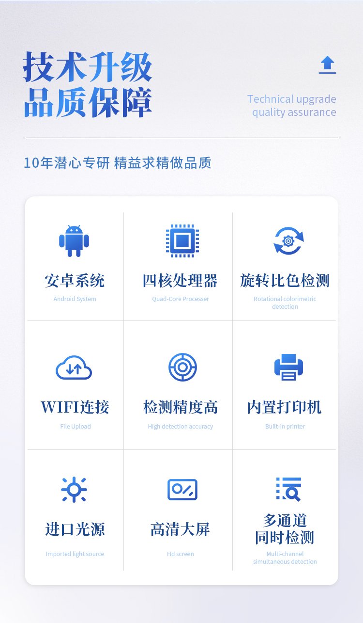 *儀器采用精密旋轉(zhuǎn)比色池設(shè)計(jì),使用光源一致,可以解決各通道間由于光源誤差帶來(lái)的檢測(cè)結(jié)果誤差問(wèn)題,檢測(cè)結(jié)果更加精準(zhǔn)。