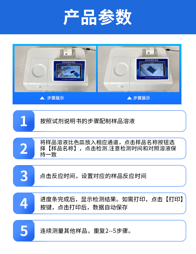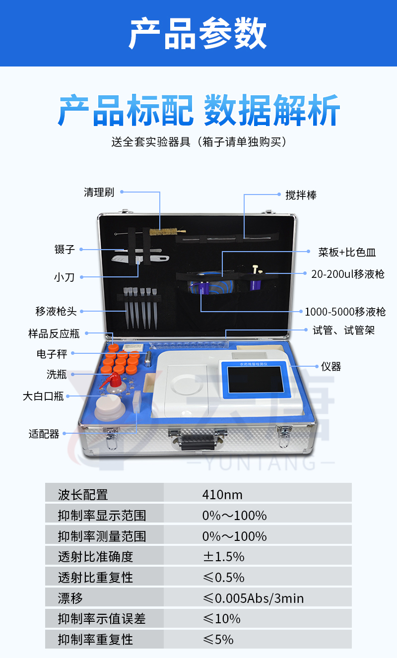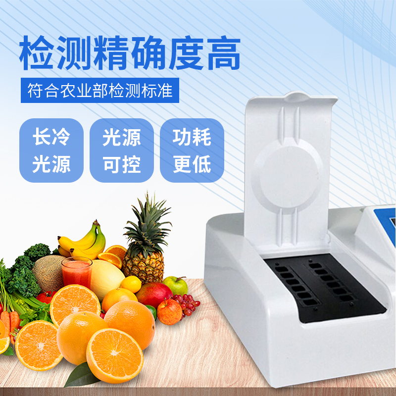 廣泛應用于主要用于蔬菜、水果、茶葉、糧食、農副產品等食品中有機磷和氨基甲酸酯類農藥殘留的快速檢測;此外還可用于果蔬茶生產基地和農貿批發銷售市場現場檢測,餐館、學校、食堂、家庭果蔬加工前的安全速測等。