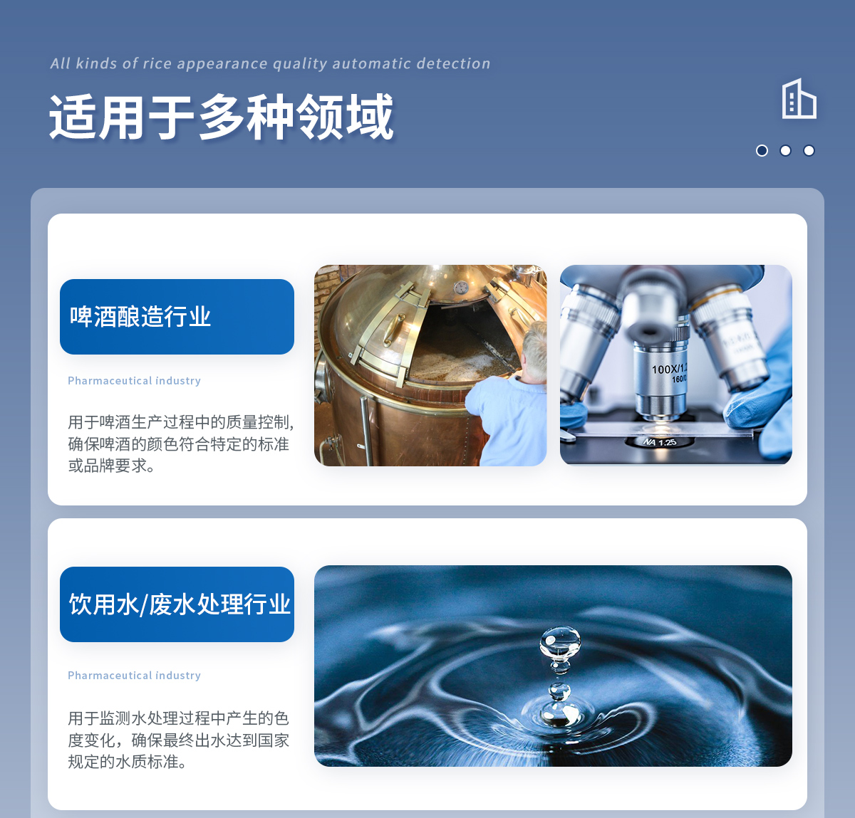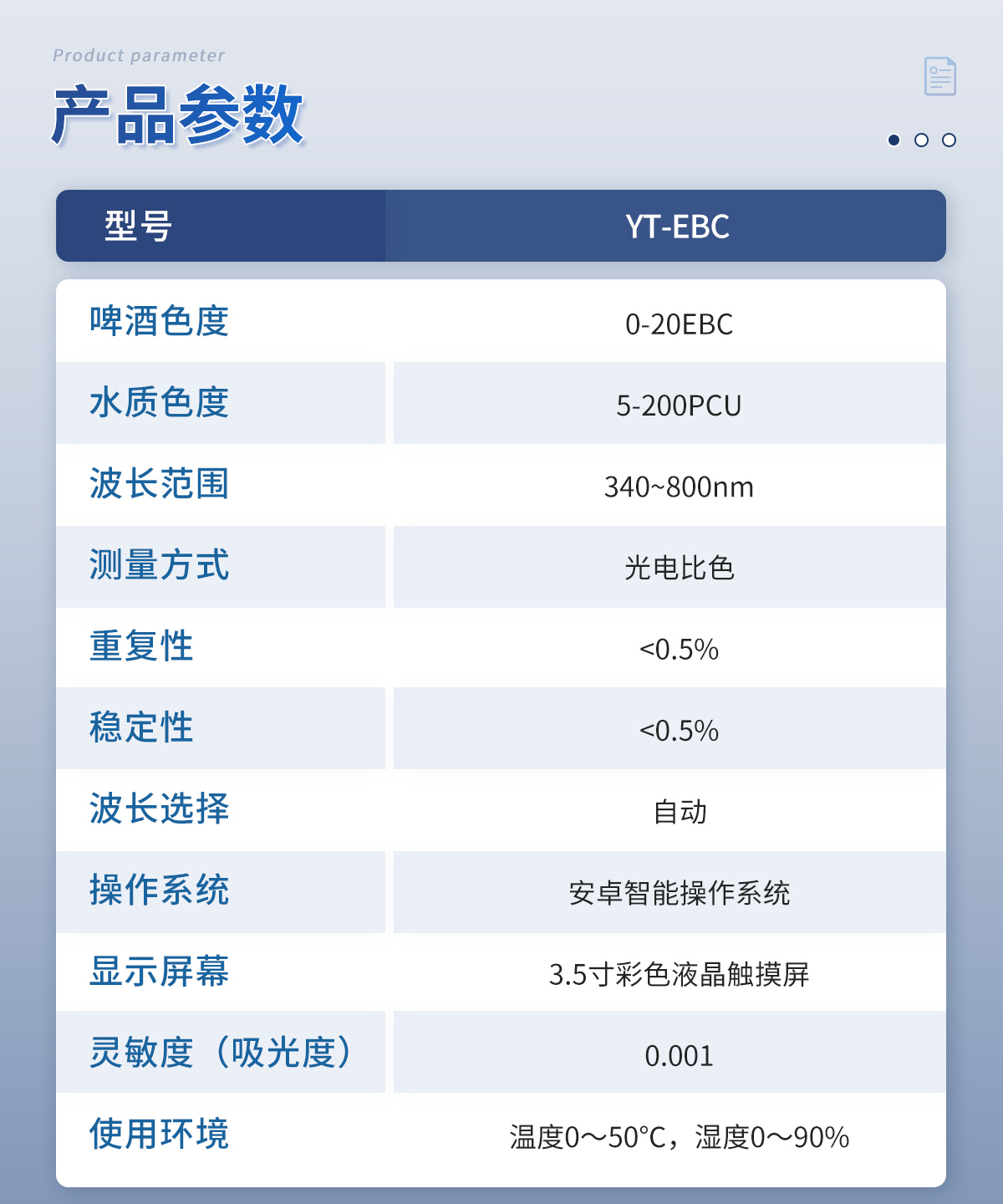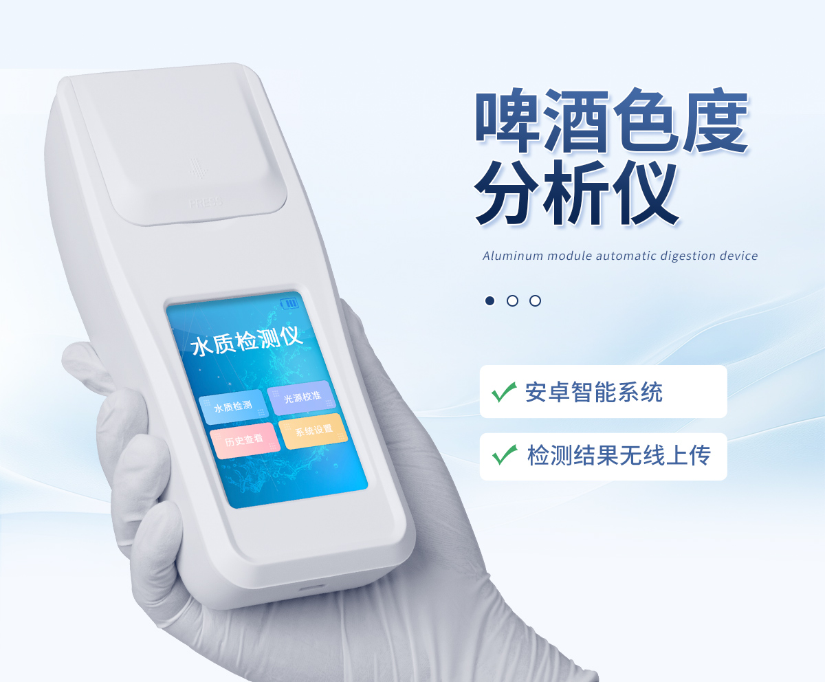啤酒色度測定儀采用鉑-鈷標準色度法,用于測定溶解狀態的物質所產生的顏色,儀器采用國家標準GB5750中所規定的鉑-鈷色度標準溶液進行標定,采用鉑-鈷色度作為計量單位。