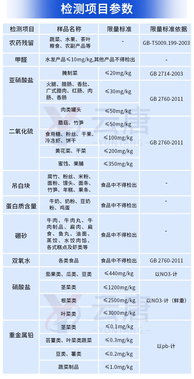 可快速檢測各類食品中的甲醛、二氧化硫、亞硝酸鹽的含量,儀器預留其他項目檢測程序和端口,根據日后需求可方便的自主增加檢測項目。