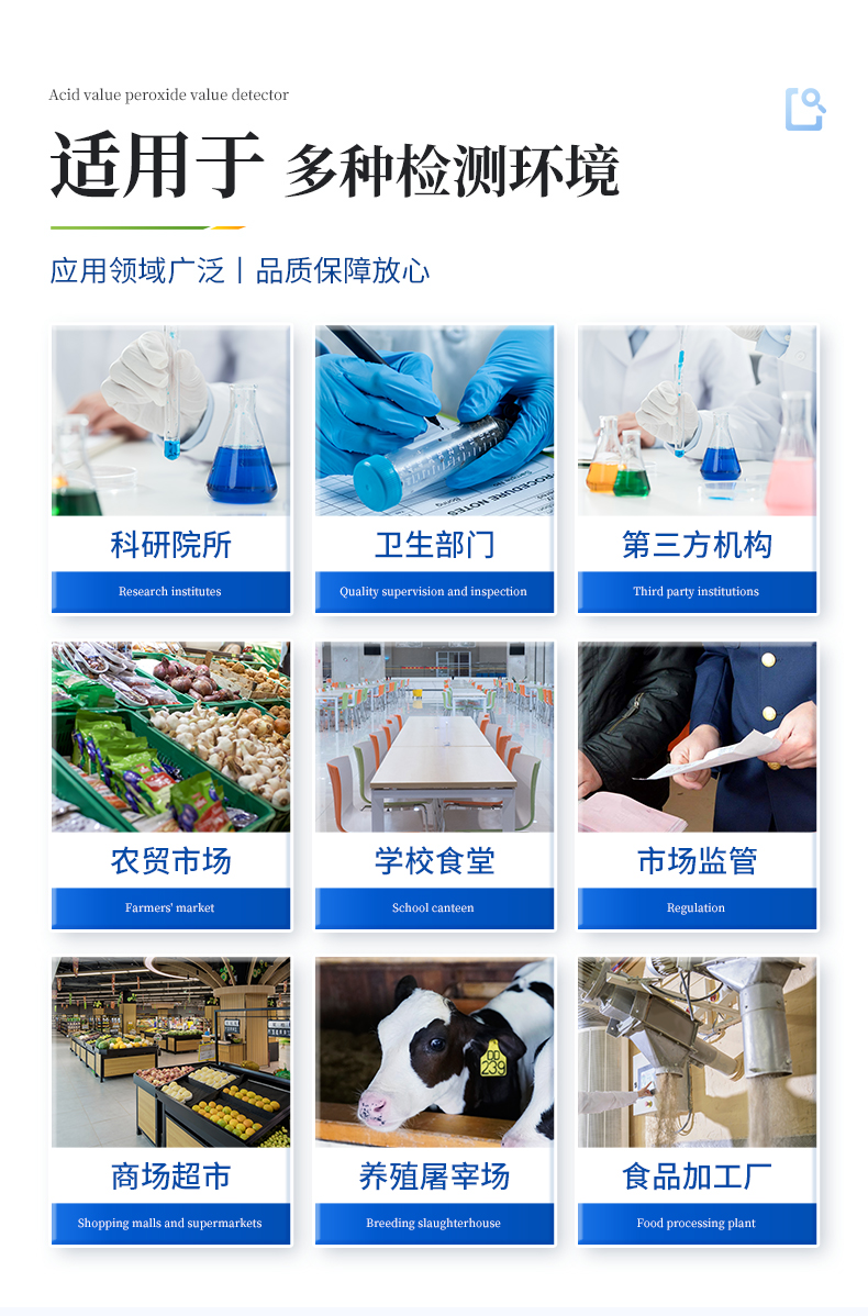 該高精度食品安全檢測儀為集成化食品安全快速檢測分析設備,廣泛應用于食藥監局、衛生部門、高教院校、科研院所、農業部門、養殖場、屠宰場、食品肉產品深加工企業、檢驗檢疫部門等單位使用。