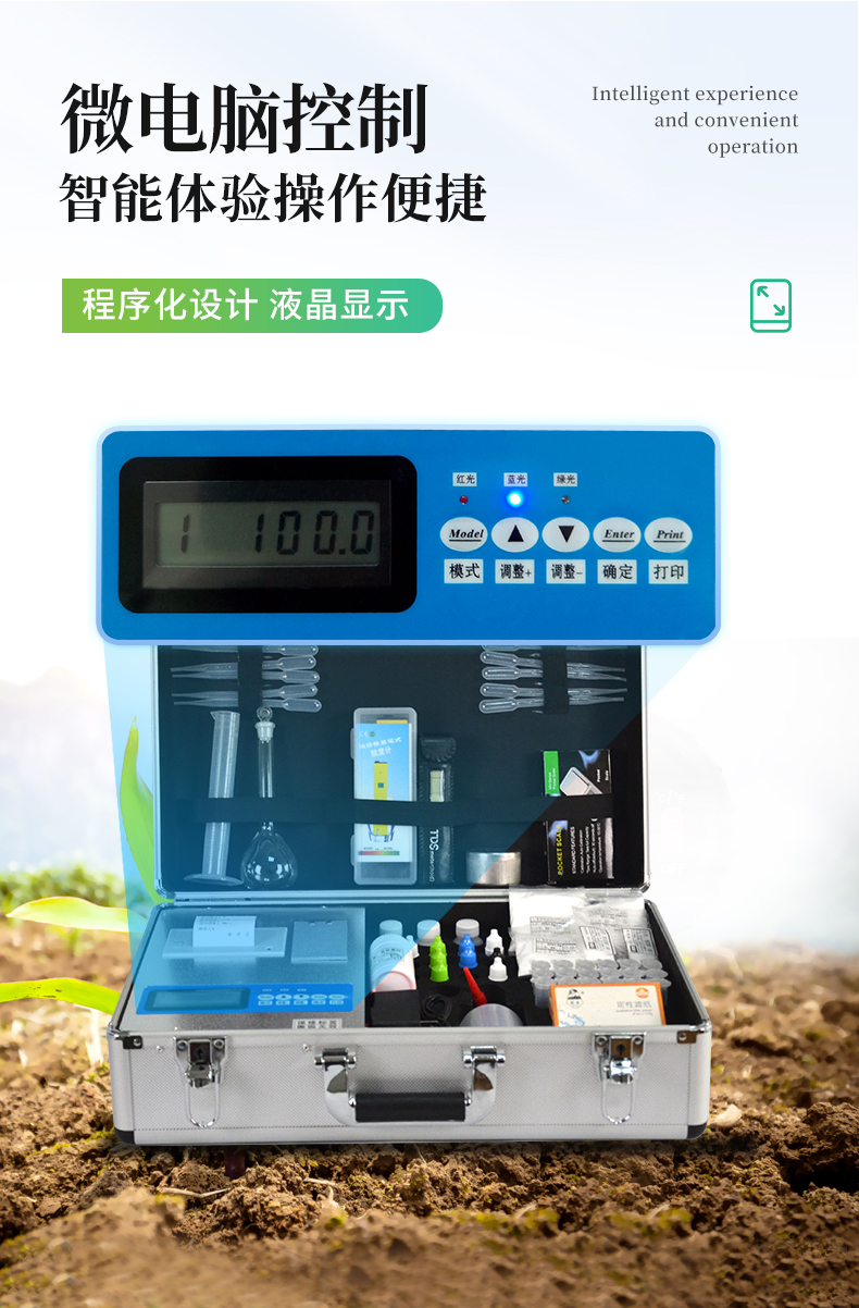 配套齊全:土壤有機質速測儀該儀器集藥、器、儀為一體,攜帶方便,相當于一個小型實驗室。適于農業服務部門或農資經銷商、肥料廠商測土施肥和鑒別肥料真假。