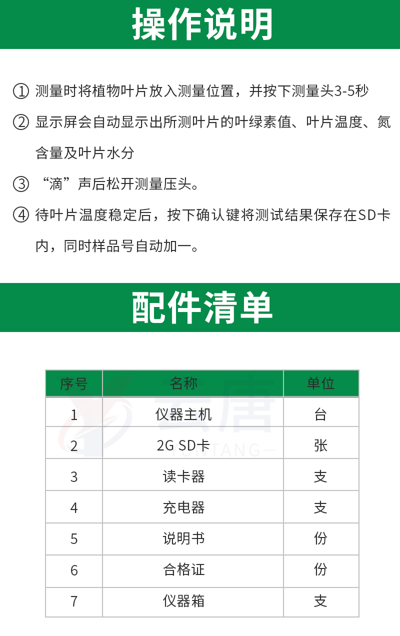 配套齊全:該儀器集藥、器、儀為一體,攜帶方便,相當(dāng)于一個(gè)小型實(shí)驗(yàn)室。適于農(nóng)業(yè)服務(wù)部門(mén)或農(nóng)資經(jīng)銷(xiāo)商、肥料廠商、莊家醫(yī)院進(jìn)行農(nóng)化服務(wù)。